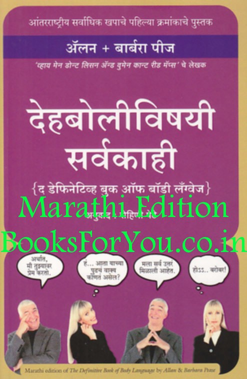 This is the Marathi edition of THE DEFINITIVE BOOK OF BODY LANGUAGE by Allan and Barbara Pease. An authoritative guide on secrets revealed by a person’s body language. Helps make positive and fruitful changes in the way one reacts to specific situations, based not only on what is heard, but also what is seen - by reading body language accurately. With easily identifiable examples of famous personalities in public and personal situations.