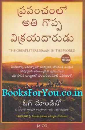 The Greatest Salesman In The World (Telugu Edition) by Og Mandino Despite its slightly mundane title, The Greatest Salesman in the World by Og Mandino is a wonderful book about success and achievement, and the power of positive thinking. First published in the year 1968, the book is almost philosophical in its approach, and the clear and compelling style of Mandino’s writing forces the reader to contemplate his teachings and reflect on them. The book starts as a parable about a young man named Hafid, who lives in Biblical Jerusalem. A very wealthy and successful trader takes him into his fold, mentoring him in his work. As the trader lies on his deathbed, he tells Hafid the secret to his enviable success – the principles written in the ‘ten scrolls’, given to him by another rich man upon his death. Each of the scrolls has a ‘mantra’ written on it. The mantras or instructions written in the scrolls are essential towards forming life-changing habits necessary for success. The term ‘success’ is very relative here, as Mandino not only teaches his readers about financial gains, but also about how to have a positive outlook towards life, and to live each day with purpose, love, and compassion.